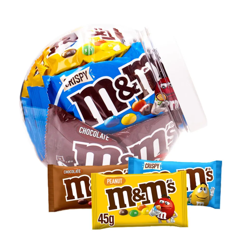 Zin in variatie? Deze herbruikbare pot met 423g M&M’s combineert het beste van drie werelden: Peanut, Crispy en Choco. In totaal krijg je 10 individueel verpakte zakjes: 4x Peanut, 3x Crispy en 3x Choco – ideaal om mee te nemen.