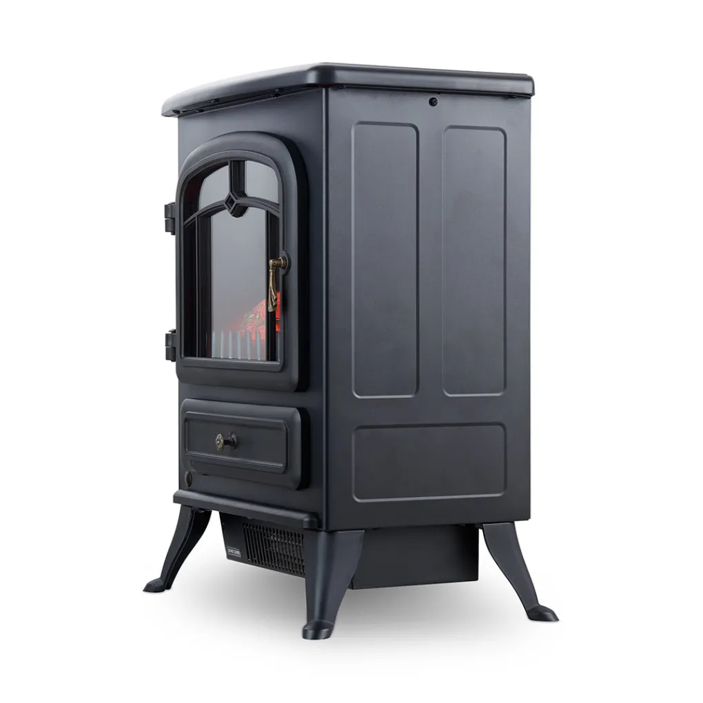 De elektrische kachel van MOA heeft een totale hoogte van 55 cm, een diepte van 28 cm en een breedte van 41,5 cm. Gecombineerd met de stijlvolle, gietijzeren-look past de haard in elk interieur. Hij is groot genoeg om een kamer van maximaal 20 m2 optimaal te verwarmen en klein genoeg om niet al te veel ruimte in beslag te nemen.