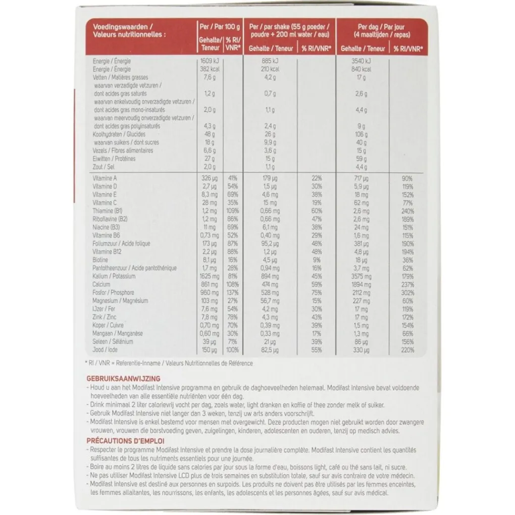 De aanbevolen hoeveelheid van 4 sachets per dag garandeert alle inname van essentiële voedingsstoffen gedurende een dag.