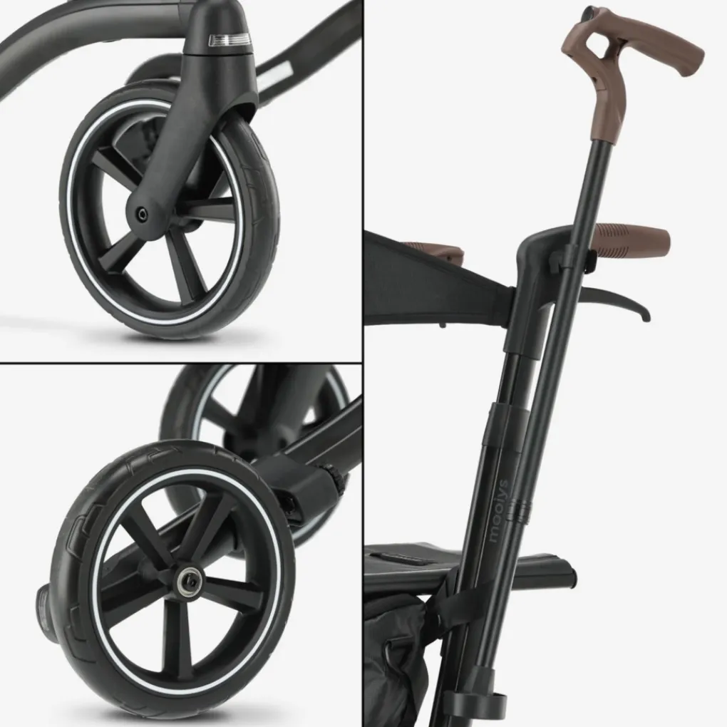 De zachte zitting met rugleuning zorgt ervoor dat je op elk moment even kunt uitrusten. De 360º draaibare rubberen wielen bieden soepel rijcomfort op verschillende ondergronden, van tegels tot trottoirs.