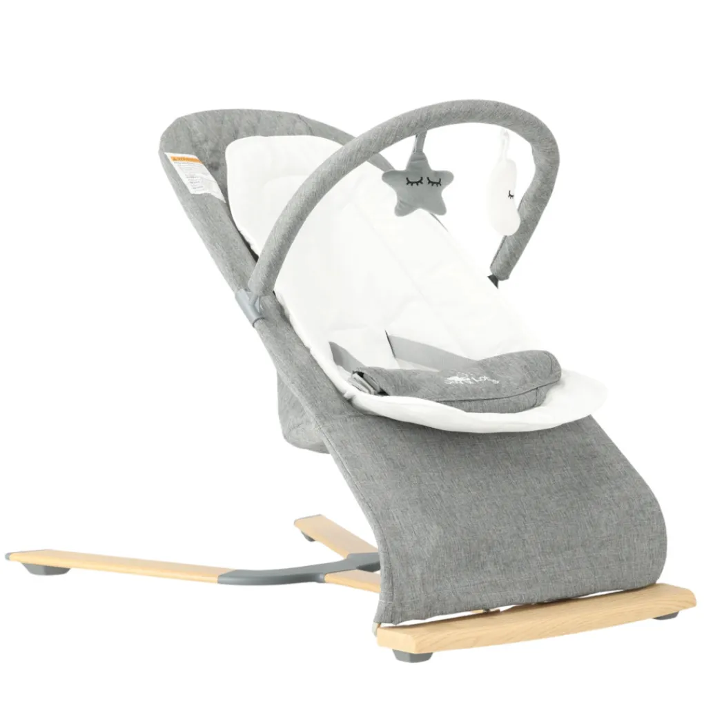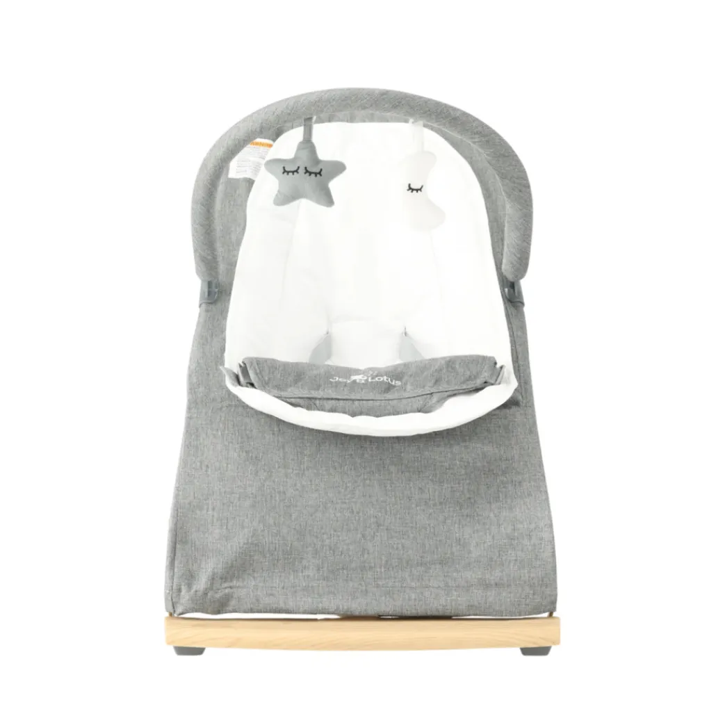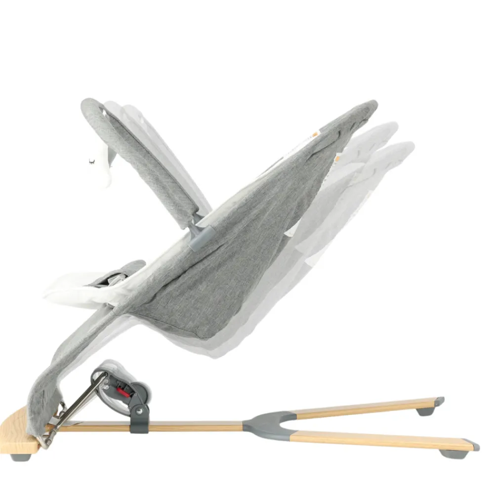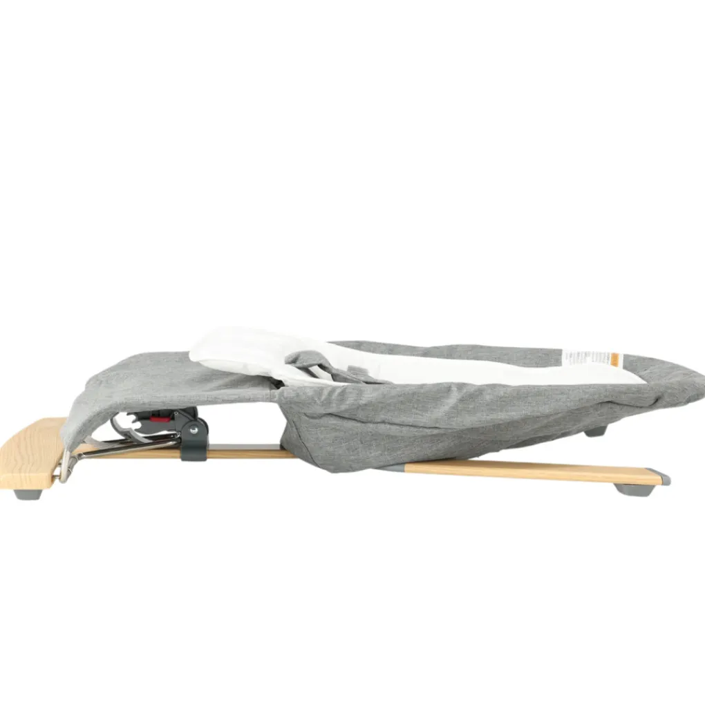 De ronde houten basis en de moderne grijze tweed bekleding maken deze bouncer een stijlvolle toevoeging aan elk interieur. Niet alleen functioneel, maar ook mooi om te zien!
