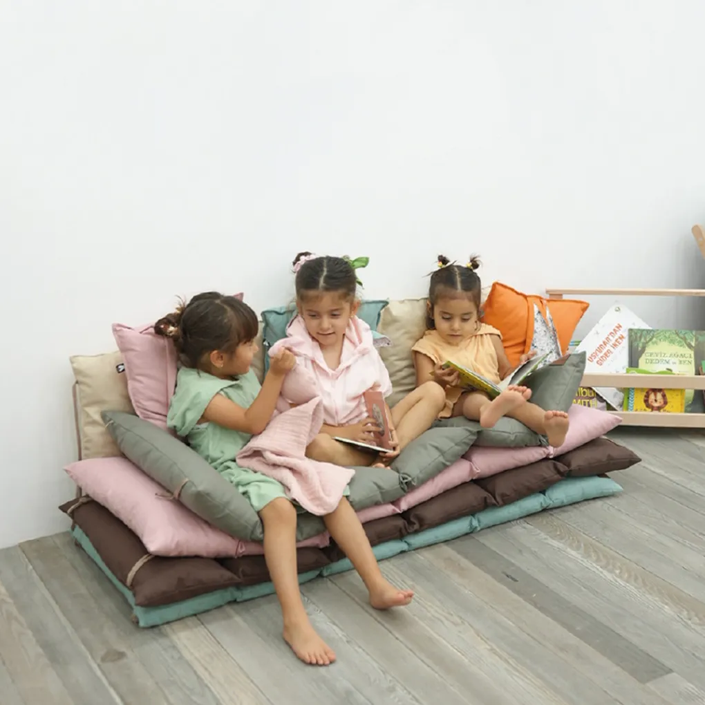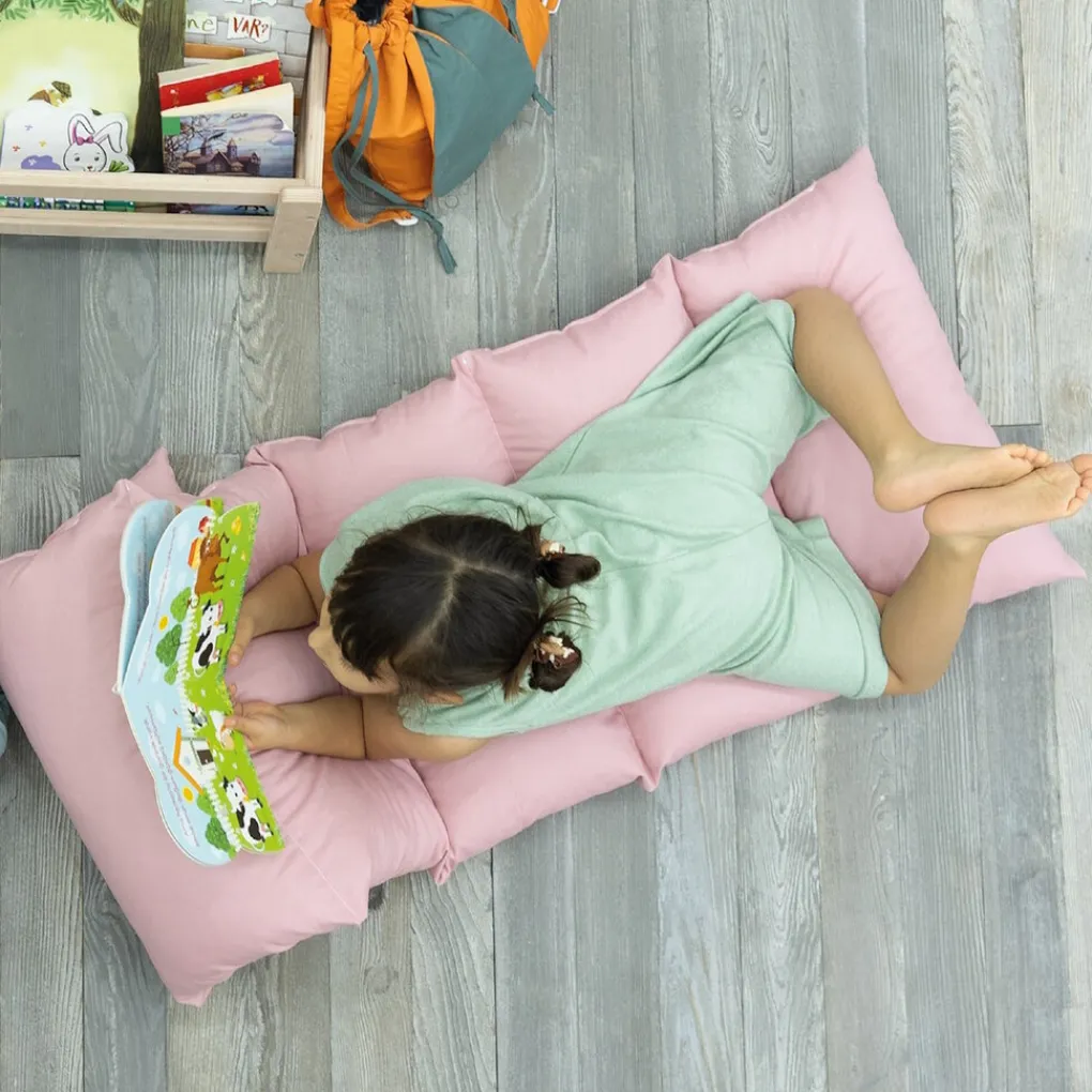 Het multifunctionele speelmatras is ontworpen volgens het Montessori-principe. Door de vouwen in het kussen maak je er gemakkelijk een dubbel kussen van, of rol je hem zo op. Door de verschillende vormen die je ervan kan maken is het ideaal materiaal om bijvoorbeeld een kasteel van te bouwen! Daarnaast heeft het matras 6 touwtjes waarmee je hem ergens aan vast kunt maken. Heb je het speelmatras even niet nodig? Dan kun je het matrasje gemakkelijk opvouwen en opbergen.