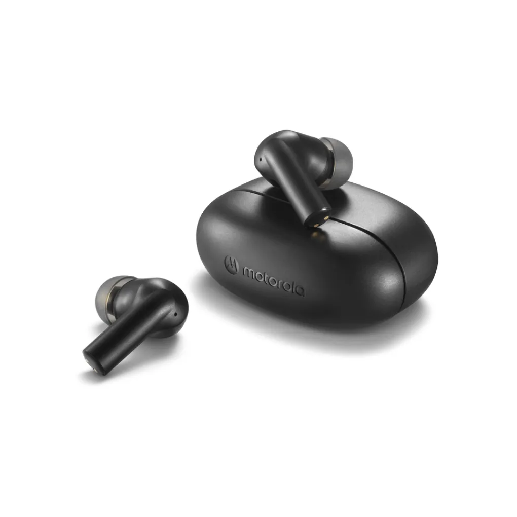 Draag de Motorola Moto Buds 500 ANC draadloze oordopjes om te genieten van muziek en oproepen met geluidsonderdrukking. Bedien muziek en gesprekken via aanraking of spraak, terwijl de IPX4-classificatie bescherming biedt tegen zweet en regen.