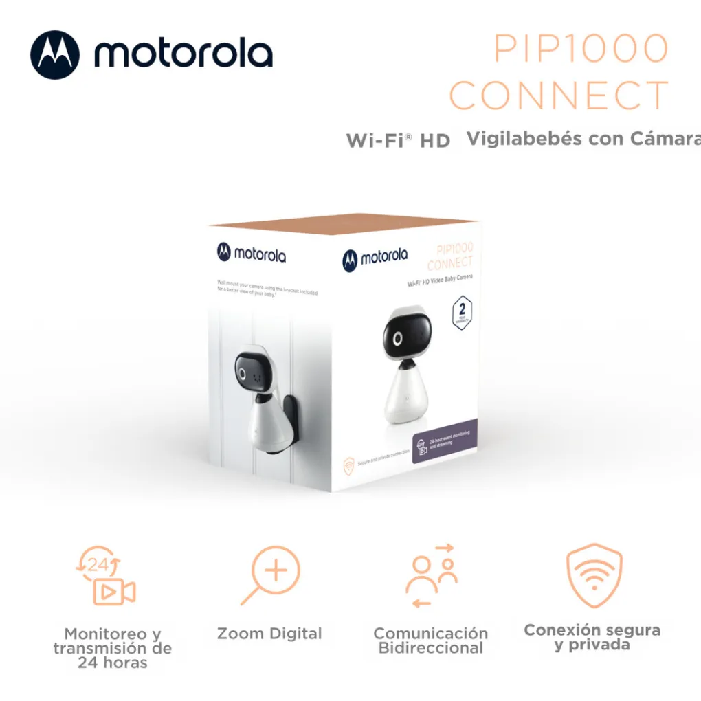 De Motorola PIP1000 Connect is een HD Wi-Fi babycamera die flexibiliteit en gemoedsrust biedt, zowel thuis als onderweg. Met 1080p resolutie zie je je baby altijd duidelijk en gedetailleerd.