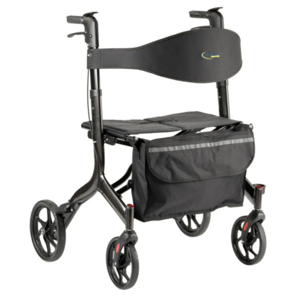 De rollator light xl is een fijne rollator die speciaal bedoeld is voor zware belasting. Het frame van de light rollator is dubbel versterkt, wat zorgt voor extra stevigheid en stabiliteit tijdens het lopen. Dankzij de extra brede zitting en de stevige rugband kunt u op de rollator zitten, om bijvoorbeeld uit te rusten tijdens een wandeling. Hiernaast is de rollator opvouwbaar, zodat u hem gemakkelijk op kan bergen of kan vervoeren. Bij de rollator zit een afsluitbare rollatortas en een stokhouder. Tot slot zijn de handvatten van de rollator verstelbaar, zodat u ze af kunt stellen op de hoogte die het beste bij uw lengte past. Dit product is een medisch hulpmiddel.