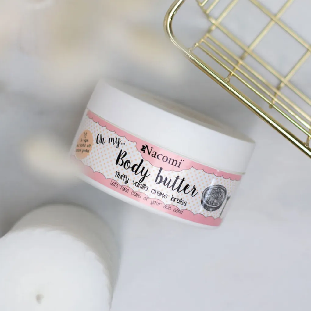 De Nacomi Body Butter Vanilla Crème Brulee wordt aanbevolen voor het verminderen en voorkomen van striae, maar kan dankzij de zijdezachte consistentie ook zeker gebruikt worden voor een lichaamsmassage. Deze 100% natuurlijke body butter met shea boter heeft verleidelijke aroma’s van vanille en amandelen. De body butter heeft een intens vochtinbrengende werking, die de teint en versteviging van de huid verbetert.