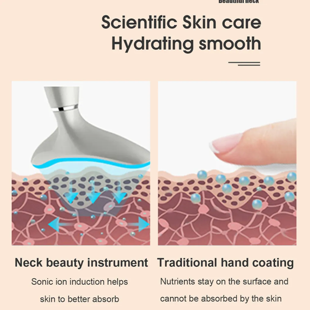 Een gestroomlijnd apparaat speciaal ontworpen voor de huidverjonging van de nek met verwarmende en LED-lichtfuncties.
