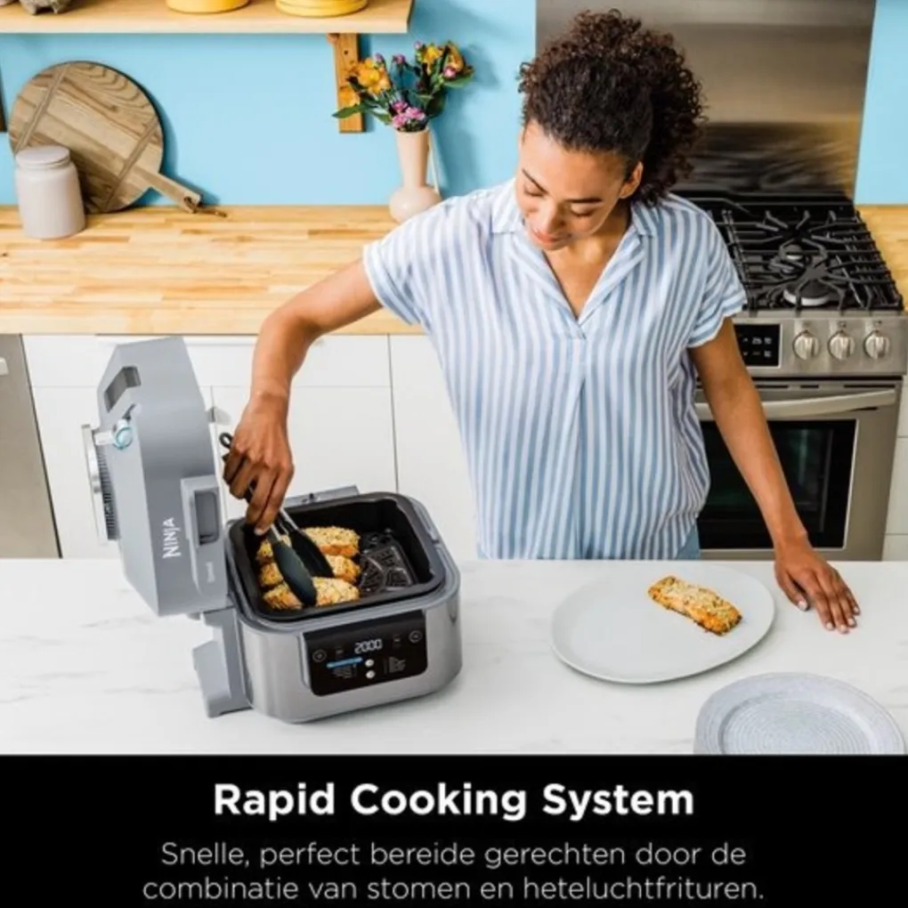 De nieuwste Ninja Speedi Rapid Cooker en Airfryer is een multifunctioneel apparaat met maar liefst 10 verschillende kookfuncties. Zo grill je heerlijke stukken vlees, bak je een luchtige taart of airfry je een hele maaltijd, allemaal met hetzelfde apparaat! De Ninja Speedi is speciaal ontworpen om snel en gemakkelijk gerechten te maken in slechts één pan. Door de meegeleverde kookplaat breng je lagen aan in de kookpan voor eventuele gerechten met meerdere componenten. Daarnaast combineert het Rapid Cooking Systeem stoom met convectiehitte om zo op de snelste manier complete maaltijden te bereiden.