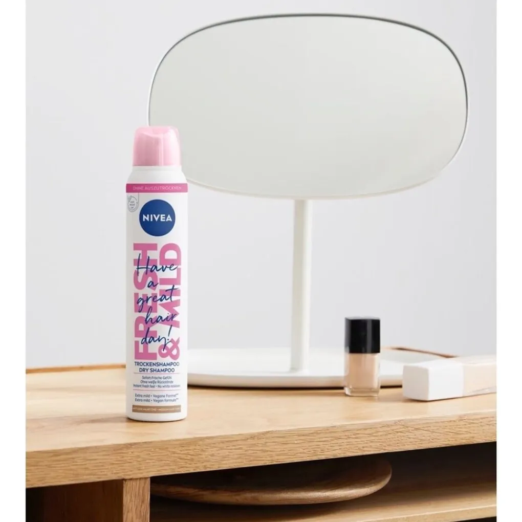 NIVEA Fresh Revive 3-in-1 Droogshampoo voor Donkerblond Haar verfrist donkerblond haar zonder witte resten. De droogshampoo is vegan, droogt niet uit en is mild voor je hoofdhuid. Perfect voor dagelijks fris haar zonder water!