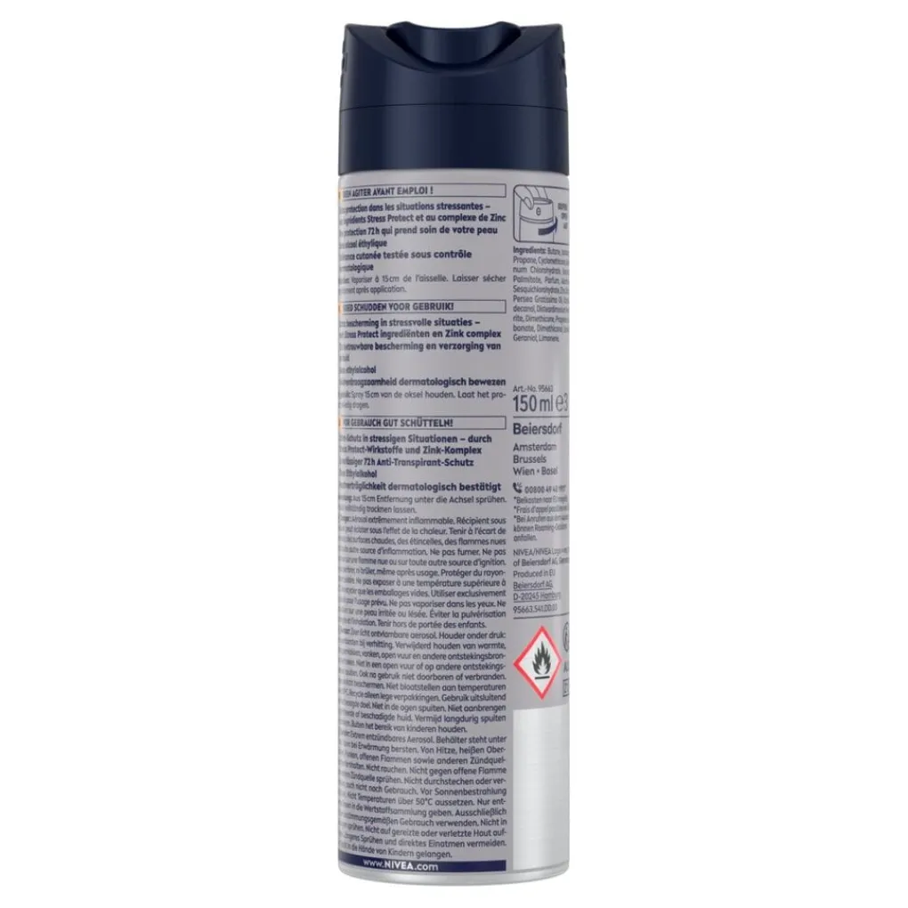 Deze NIVEA Men Active Energy Antitranspirant Spray biedt extra bescherming in stresvolle situaties. De actieve Stress Protect-ingrediënten en het zinkcomplex geven je een fris en zeker gevoel.