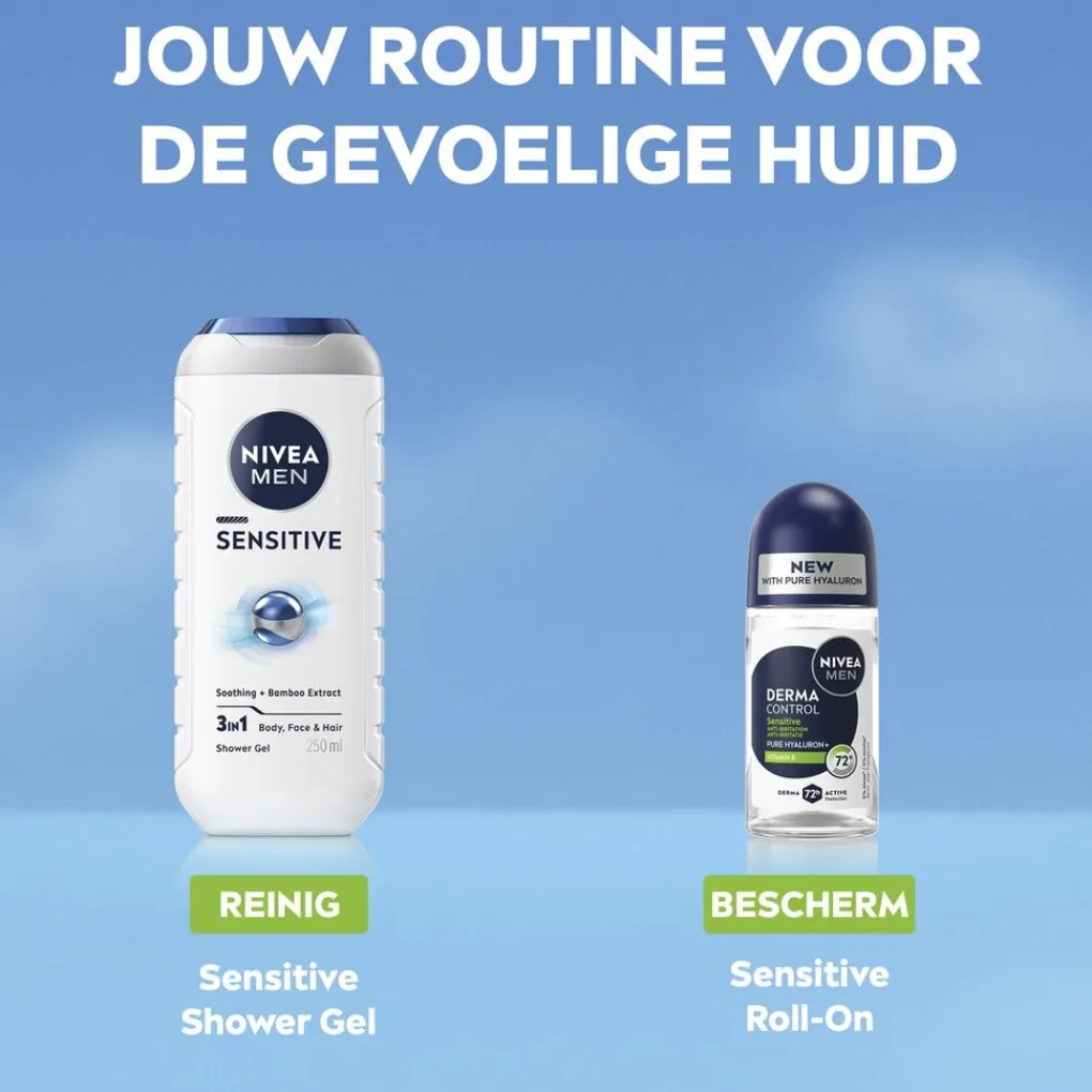 De NIVEA Men Derma Control Sensitive Antitranspirant Roller biedt 72 uur* betrouwbare antitranspirantbescherming en is speciaal ontwikkeld voor de gevoelige mannenhuid.