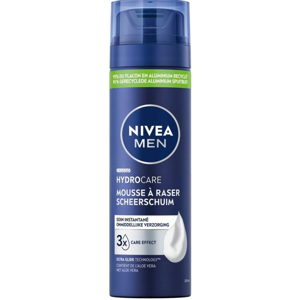 Ga voor een soepele scheerbeurt met NIVEA Men Hydrocare Scheerschuim. Het schuim bevat aloë vera en provitamine B5.