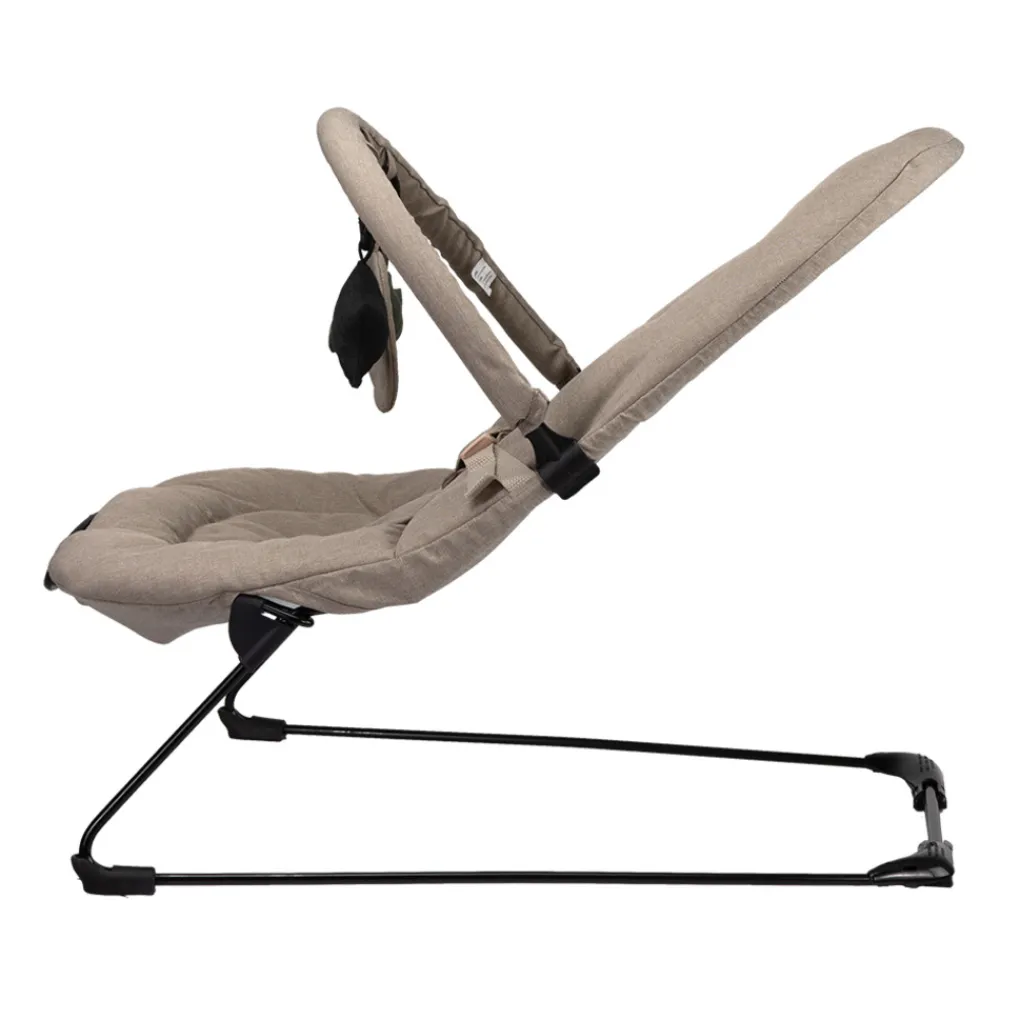 De wipstoel heeft een leuke speelboog met 3 speeltjes. De speeltjes bestaan uit 2 (knijp)speeltjes die geluid maken en 1 spiegeltje. De speelboog is afneembaar maar ook weer eenvoudig vast te klikken. Jouw kindje wordt veilig in de bouncer bevestigd door middel van een 3 -puntsgordel. Is de bekleding vies? Geen probleem, deze is afneembaar en wasbaar in de wasmachine.