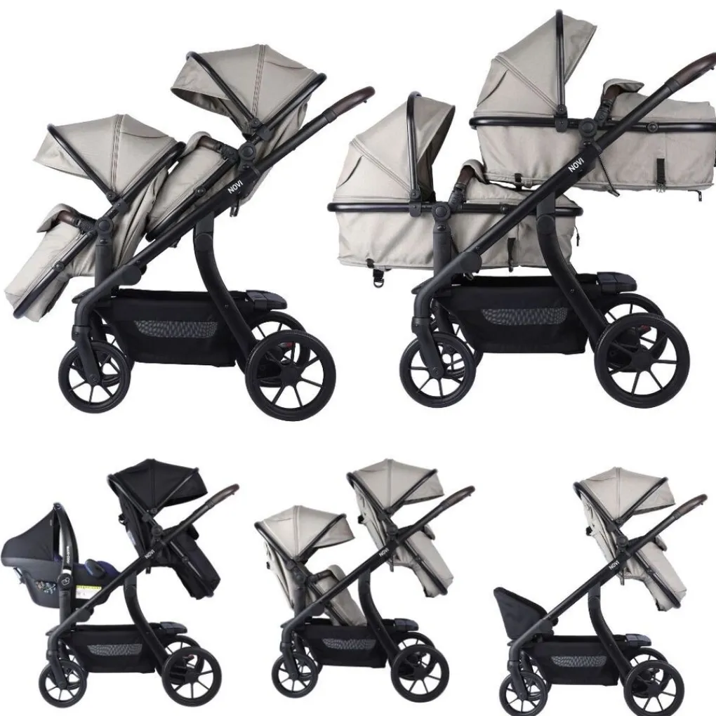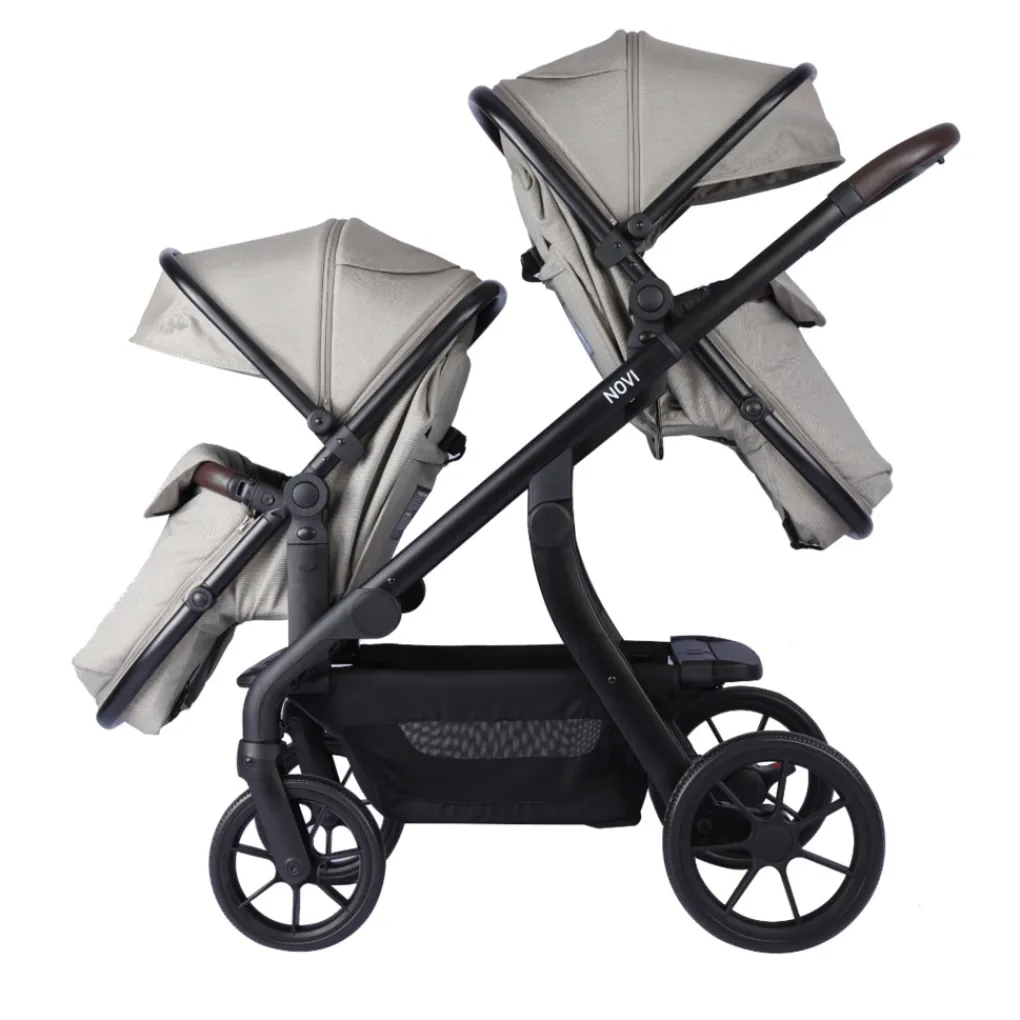 Duokinderwagen Pacific van het merk Novi is ideaal voor 2 kindjes: voor zowel een tweeling als verschillende leeftijden! Dankzij het innovatieve ontwerp, kun je met deze duowagen eindeloos veel mogelijkheden combineren. Het soepele frame met stevige wielen zorgt ervoor dat jij eenvoudig mét 2 kindjes kunt manoeuvreren door straten, winkels en de natuur. Uiteraard kun je deze kinderwagen ook voor 1 kindje gebruiken.