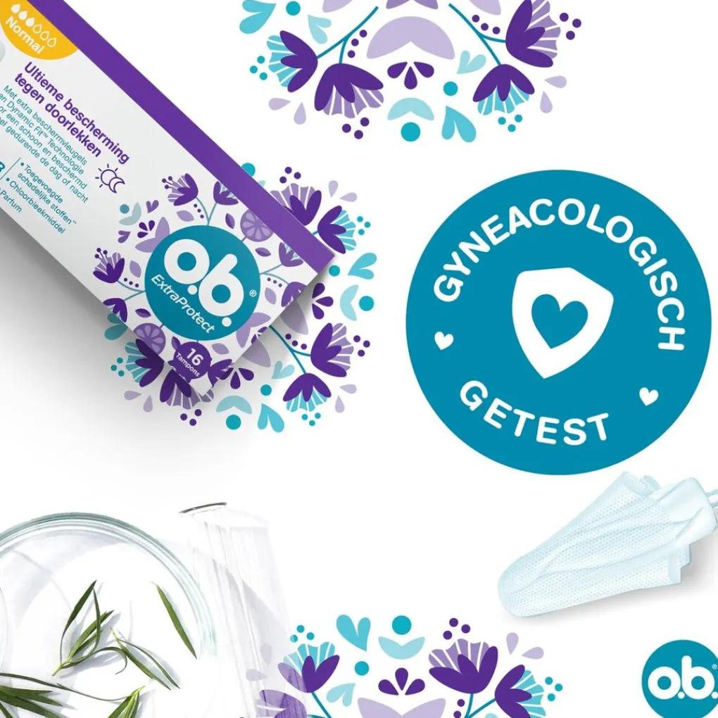 De o.b. ExtraProtect tampons zijn gynaecologisch getest, bevatten een 100% plantaardige kern en zijn vrij van schadelijke chemicaliën (zoals pesticiden), chloorbleekmiddel en parfum.