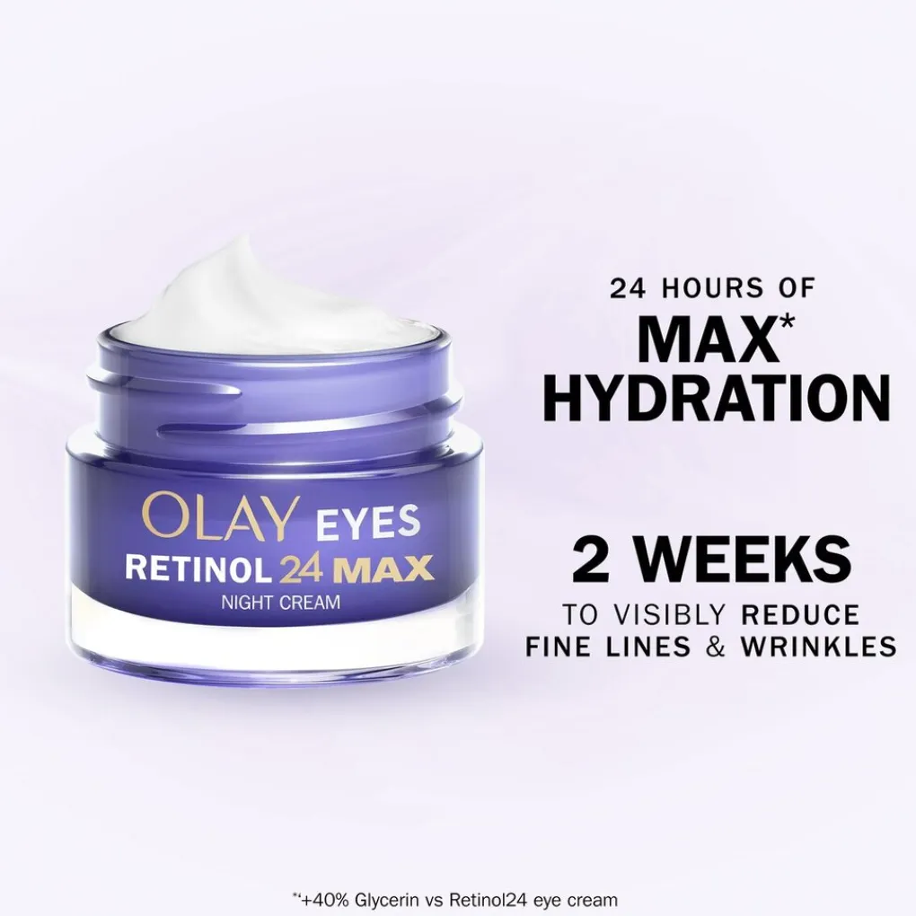 Olay Retinol 24 MAX* Nacht Oogcrème, Voor Donkere Kringen, Maakt Glad-Vernieuwt-MAX* Hydratatie,15ml