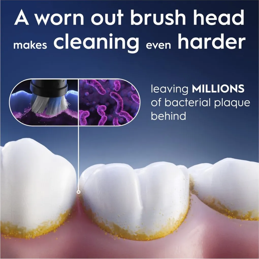 • Vervang iedere drie maanden: een versleten opzetborstel maakt poetsen lastig en laat tandplak achter. Voor een superieure reiniging moet je je opzetborstel vervangen wanneer de borstelharen wit worden