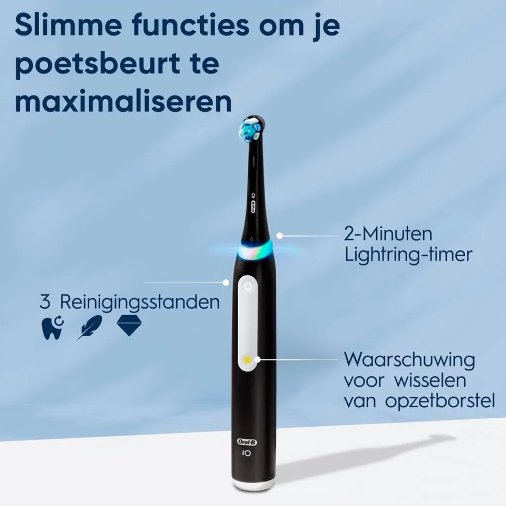 Oral-B’s intensieve whitening tandpasta werkt samen met iO’s micro-vibraties om oppervlakkige verkleuringen te verwijderen en je tandglazuur te versterken. Zo zorg je voor klinisch bewezen zeven keer wittere tanden*.