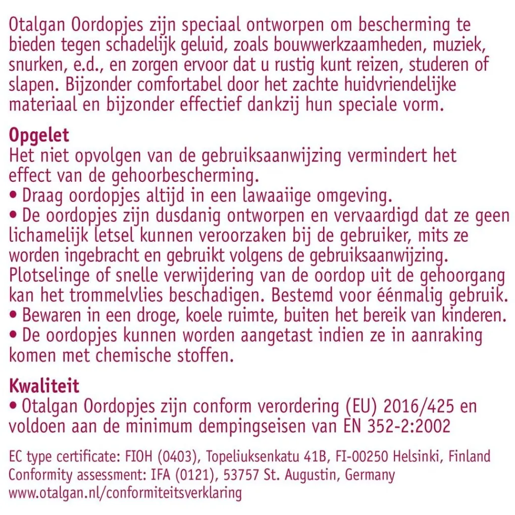Over de Otalgan Comfort Oordopjes: