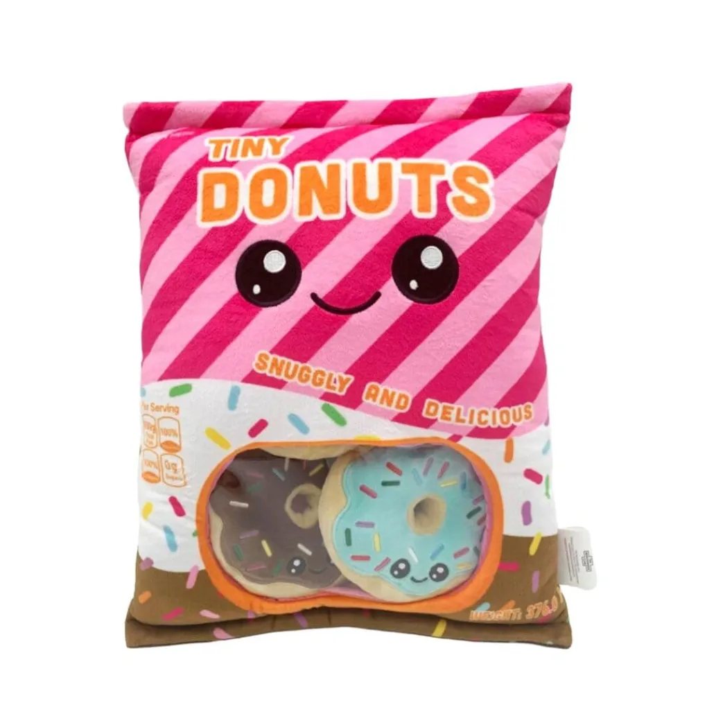Je krijgt vijf Donutknuffeltjes in de Pluche Snuggle & Snack Donutknuffeltjes. Je bewaart de knuffels handig in de knuffelzak. De knuffels zijn geschikt vanaf 0 jaar.