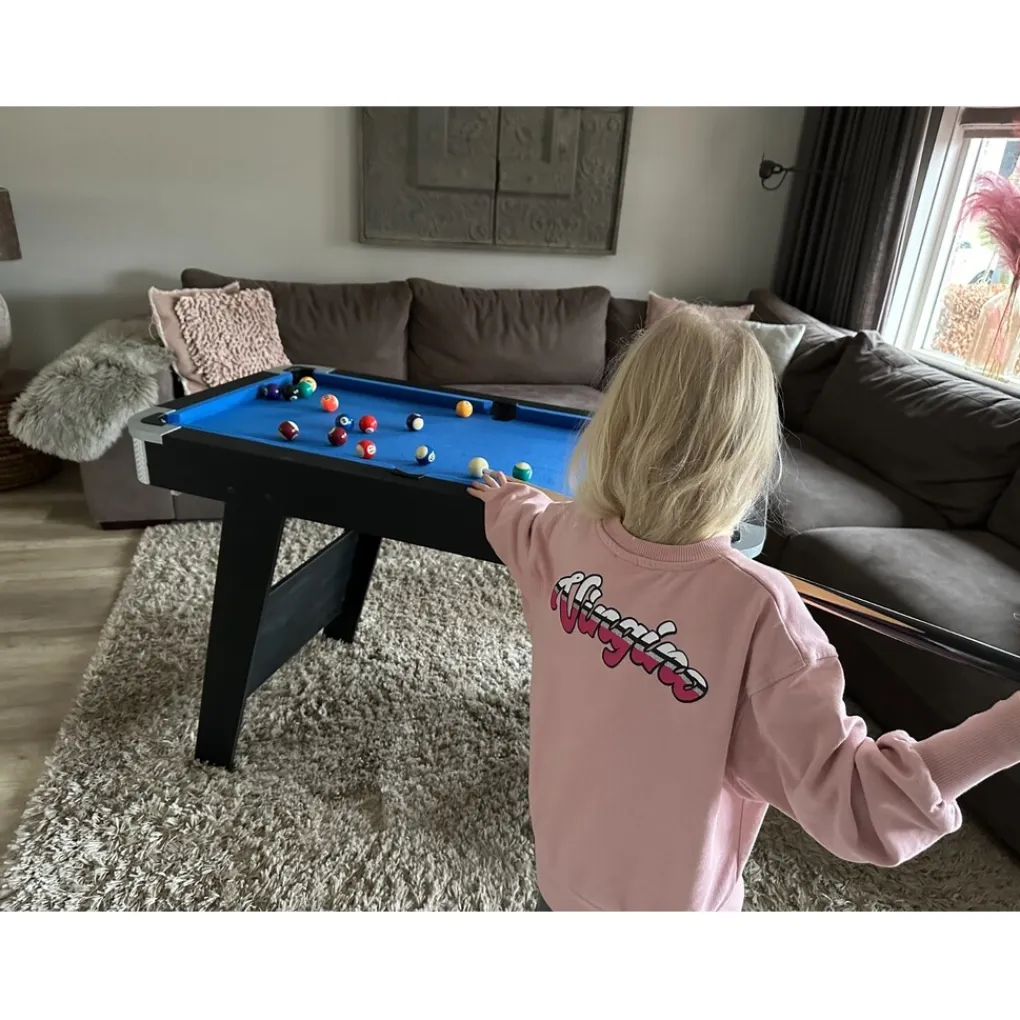 Dankzij het compacte formaat en het gewicht is de pooltafel ideaal voor kleine ruimtes en eenvoudig te verplaatsen. De 4ft kinderpooltafel Fun wordt geleverd incl. complete accessoires set. 01st. ballen set, 02st. pool keuen en triangel.
