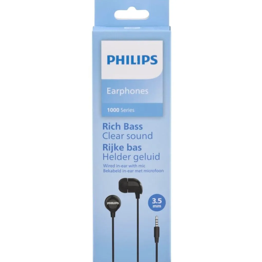 Luister naar je favoriete muziek of houd telefoongesprekken met deze handige in-ear Philips 1000 Series Earphones! De oortjes hebben een 3,5 mm jack-kabel met microfoon. Geniet van een rijke bas en een helder geluid.