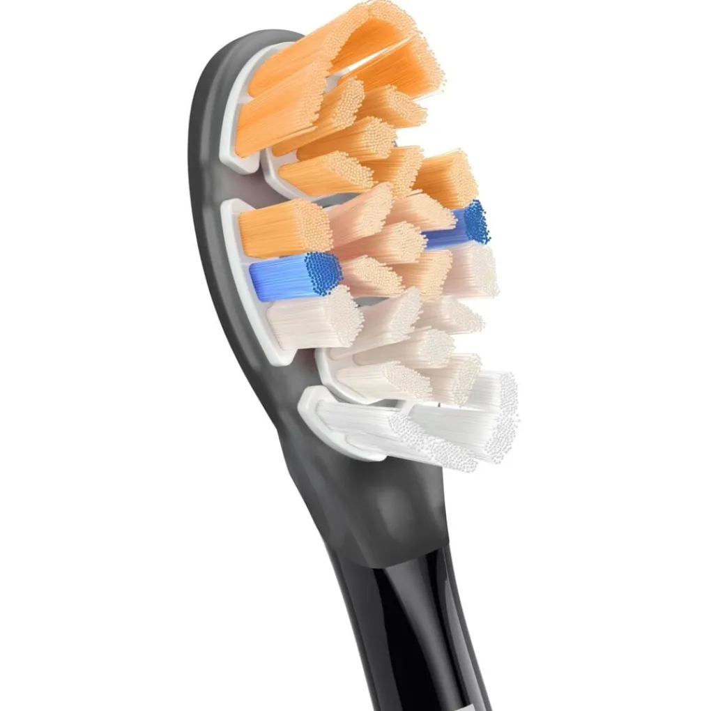 De Philips Sonicare Premium All-in-One HX9092/88 Opzetborstels hebben nauwkeurig geplaatste borstelharen die tandplakverwijdering maximaliseren, voor twintig keer meer plakverwijdering*.