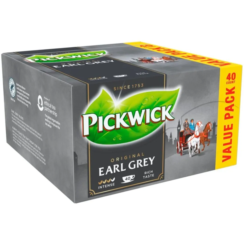 Pickwick Earl Grey Thee is een lichte theemelange met een frisse karakteristieke smaak van bergamot.