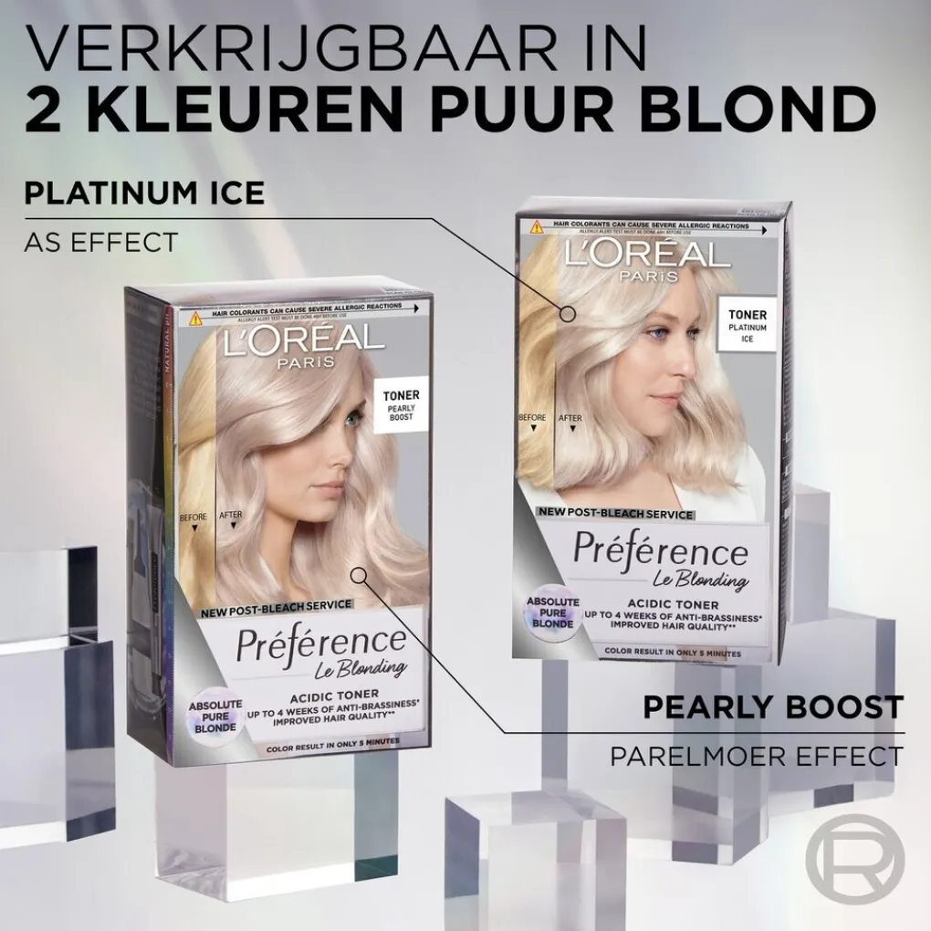 De L’Oréal Paris Préférence Le Blonding Pearly Boost Acidic Toner is een toner die ongewenste oranje en gele tonen effectief neutraliseert voor een ultra puur blond resultaat dat lang houdt dankzij de ammoniakvrije technologie.