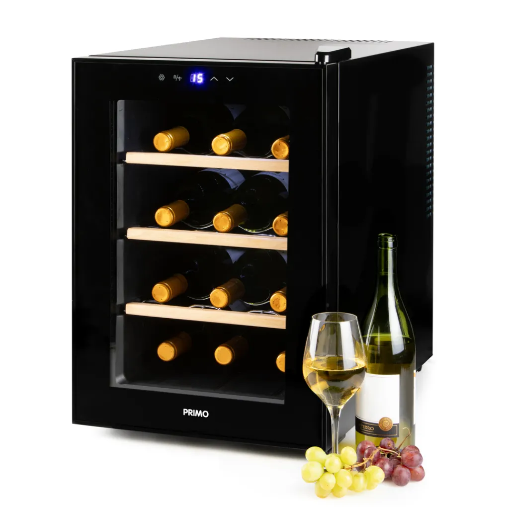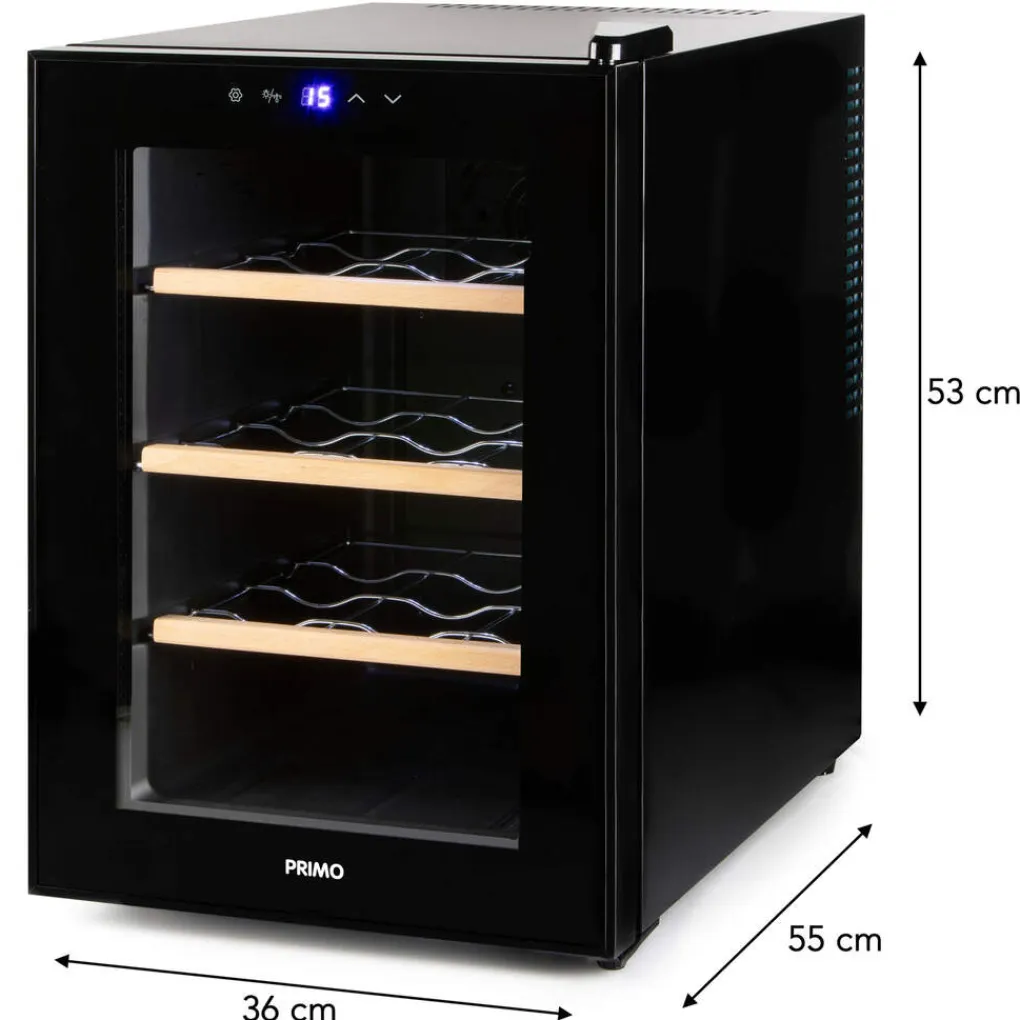 Met een inhoud van 37 liter is deze PRIMO wijnkoelkast geschikt voor het bewaren van 12 flessen wijn. Binnenin is de wijnkast voorzien met uitschuifbare metalen rekjes waarop je telkens 2 flessen boven elkaar kan positioneren in een horizontale ligging. Dit voorkomt uitdroging van de kurk en zorgt ervoor dat jouw flessen wijn lang bewaard kunnen worden. Bovendien zorgen de vier metalen rekjes met hoogwaardige houten afwerking niet alleen voor een praktische indeling maar ook voor een vintage uitstraling.