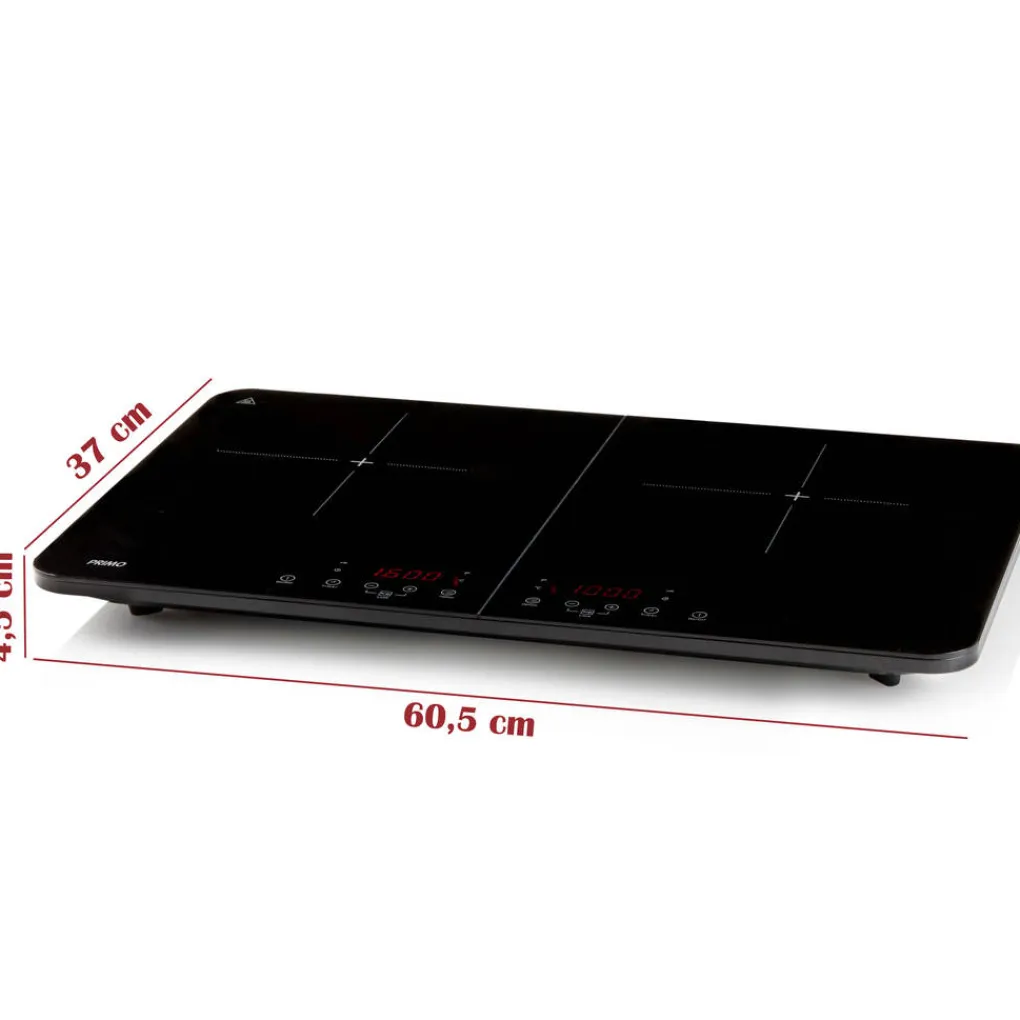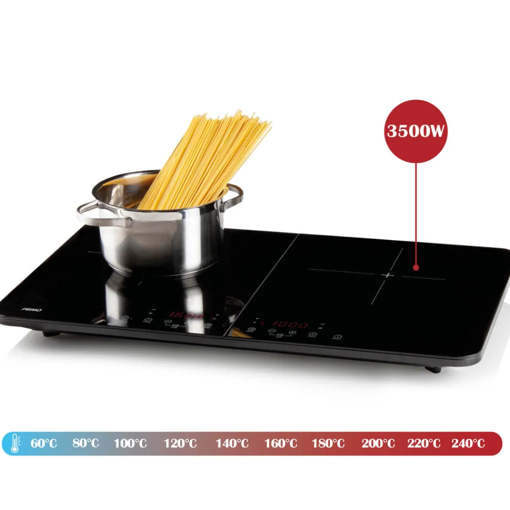 De PRIMO PR301IKP 2-pits vrijstaande inductiekookplaat is de perfecte aanvulling in je keuken. De inductie kookplaat heeft een vermogen van 3500W en 10 verschillende temperatuurstanden (60 – 240°C) per zone. De 2 kookzones hebben een diameter van 21 cm en zijn makkelijk te bedienen met behulp van het touchpad. Dankzij de ingebouwde timer, kinderslot en oververhittingsbeveiliging kan je veilig koken met deze inductiekookplaat. De compacte afmetingen zorgen ervoor dat je de kookplaat makkelijk kan verplaatsen en opbergen.