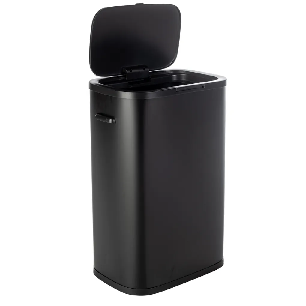 Deze prullenbak opent eenvoudig door op de ‘push’-knop van de deksel te drukken, waardoor het weggooien van afval moeiteloos en hygiënisch verloopt, zelfs wanneer je handen vol zijn. Met een inhoud van 55 liter biedt hij voldoende ruimte, zodat je minder vaak de vuilniszak hoeft te vervangen.