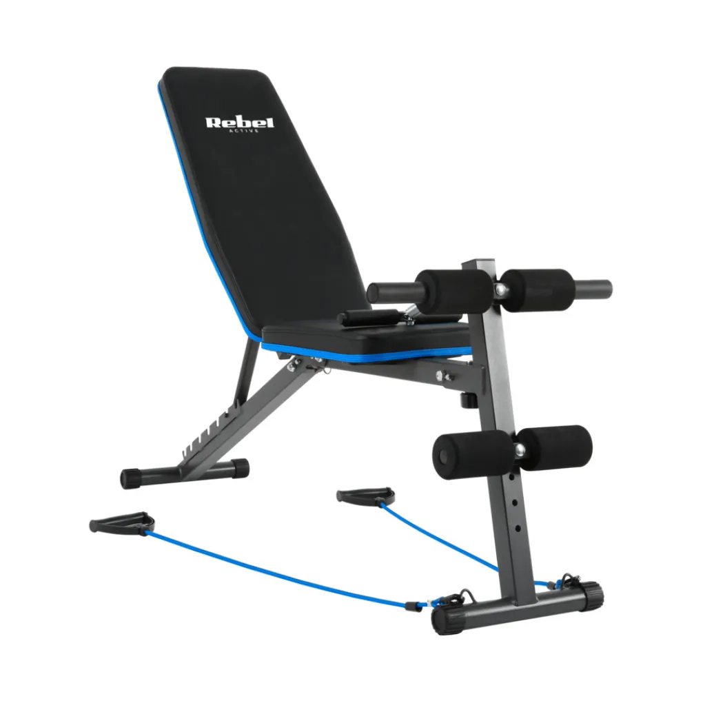 De Rebel Active verstelbare trainingsbank is uitgerust met elastieken, waarmee je je training kunt intensiveren en verschillende spiergroepen kunt versterken. Zelfs eenvoudige oefeningen worden uitdagender en effectiever met de weerstandsbanden.