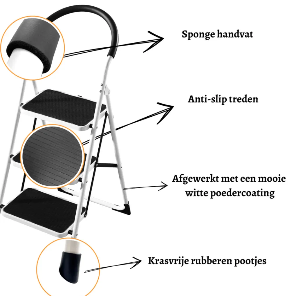 Rijoka Huishoudtrap Inklapbaar 3 Treden Anti Slip Treden Sponge Handgrepen