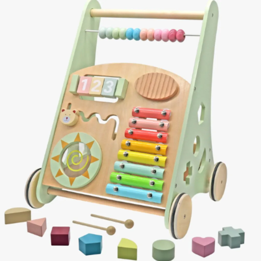 Rijoka Loopwagen Hout voor Baby Educatieve Looptrainer Anti Slip Wieltjes Babywalker