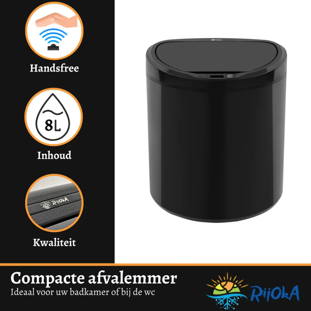 Rijoka Sensor Afvalemmer 8 Liter Kunststof Soft Close Prullenbak Best