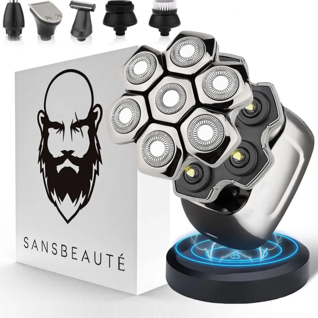 - Groter scheeroppervlak – Met 7 (!) ronde scheerkoppen bereikt het scheerapparaat van Sansbeauté® een groter scheeroppervlak zodat er meerdere haartjes tegelijk worden meegepakt. Zeven flexibele 7D scheerbladen bewegen vloeiend over je kin, schedel en wangen; het kan bijna niet makkelijker!