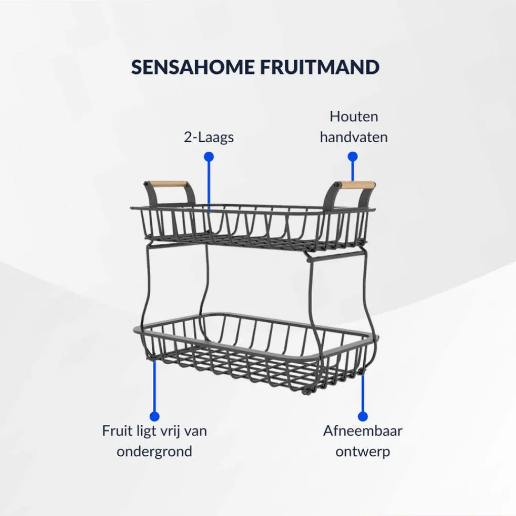 Ben je op zoek naar een mooie fruitmand? Deze fruitmand van SensaHome is hetgeen wat u zoekt. De fruitmand heeft een robuuste uitstraling en is daardoor een perfecte aanvulling voor je interieur. Een simpel, maar prachtig modern ontwerp met een functioneel design zorgt voor een stijvolle en efficiënte bewaarplaats voor je groente en fruit. Wat deze fruitmand uniek maakt is de veelzijdigheid, robuust design en de 2 lagen die je hebt om groente en fruit te bewaren. De fruitmand van SensaHome is eenvoudig te plaatsen en je hoeft geen rekening te houden dat je niet genoeg fruit meer eet.