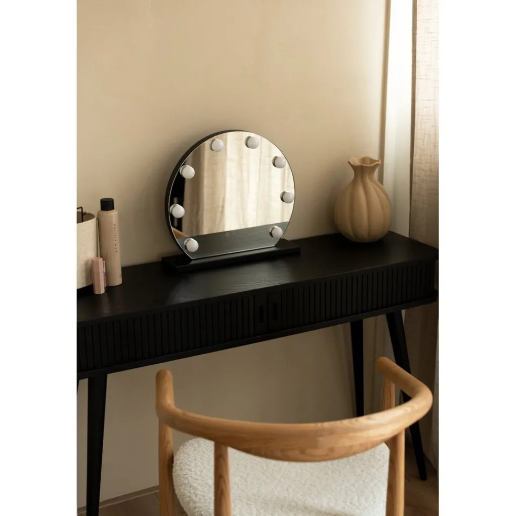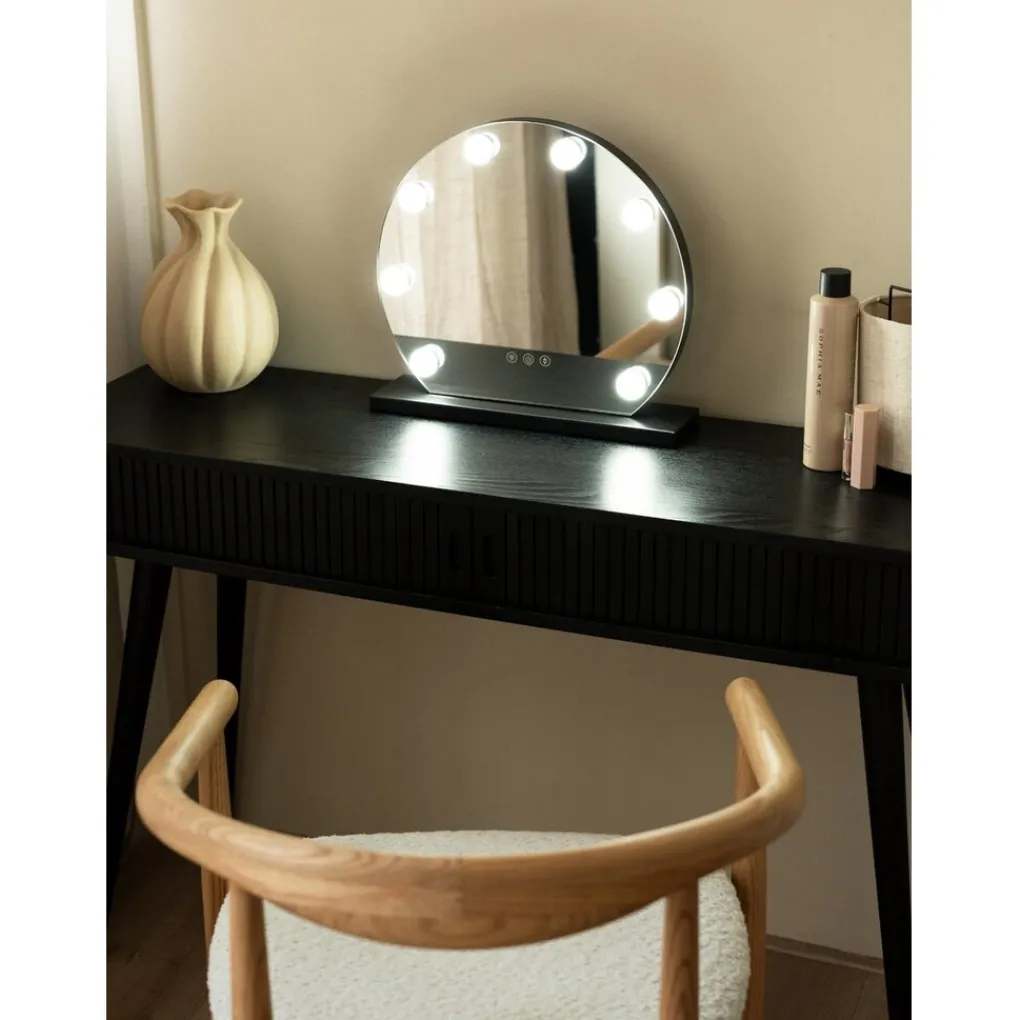Met zijn moderne zwarte ontwerp en compacte formaat (40x10x37 cm) is deze spiegel een elegante toevoeging aan elke kamer. Het licht is instelbaar en energiezuinig, en de spiegel zelf is lichtgewicht en gemakkelijk te verplaatsen.
