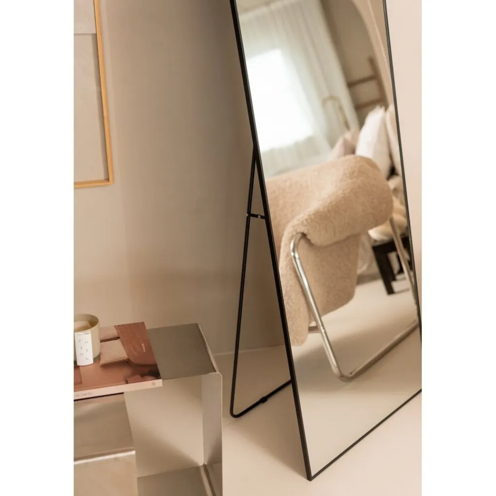 De spiegel heeft een breedte van 4 cm en de hoogte van de spiegel is 160 cm. Hij is alleen verticaal op te hangen. Daarnaast kan je hem ook gewoon zonder boren tegen de muur zetten voor een verplaatsbare toevoeging aan je interieur. Tevens heeft de spiegel een standaard waarmee hij overal staand te plaatsen is.