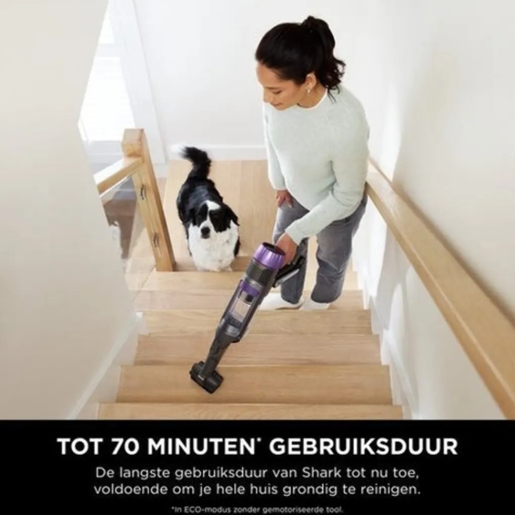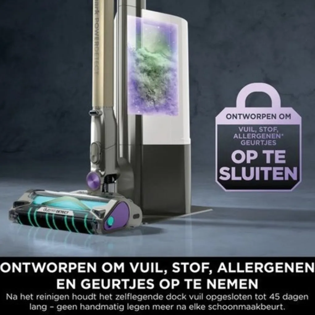 Shark PowerDetect Clean & Empty biedt Shark’s krachtigste snoerloze zuigkracht** en leegt zichzelf automatisch – voor wekenlang schoonmaakgemak.