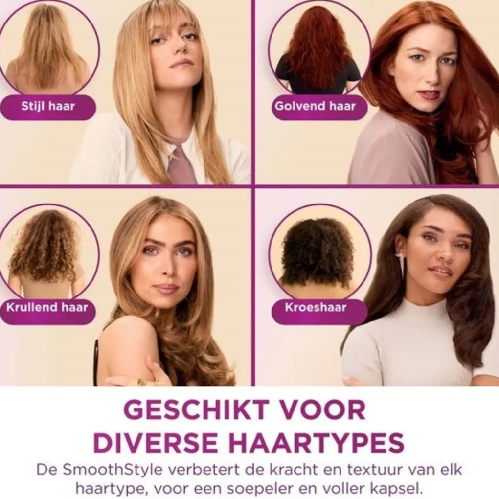 Of je nu van nature steil, golvend, krullend of dik haar hebt, Shark SmoothStyle is ontworpen om gladde, volle stijlen te creëren die passen bij alle haartypes. Kort, lang, fijn of dik haar, met behulp van de bijgeleverde stylinggids kun je nu moeiteloos thuis een salonwaardige look bereiken. De veelzijdigheid van de Shark SmoothStyle stelt je in staat om een breed scala aan looks te creëren, van strak en recht tot volumineus en krullend, allemaal met één handige tool.