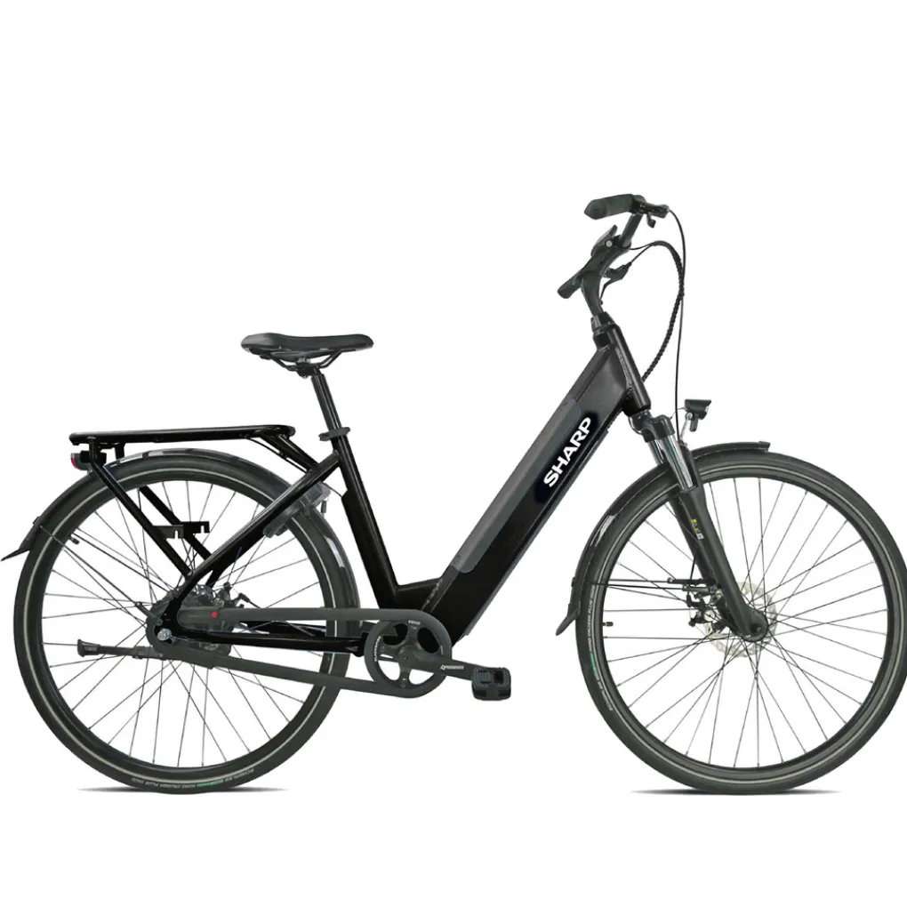 Deze fijne stadsfiets ebike is voorzien van een geveerde voorvork, mechanische schijfremmen, 28 inch wielen met antilekbanden en een aan het frame vastgelaste bagagedrager.