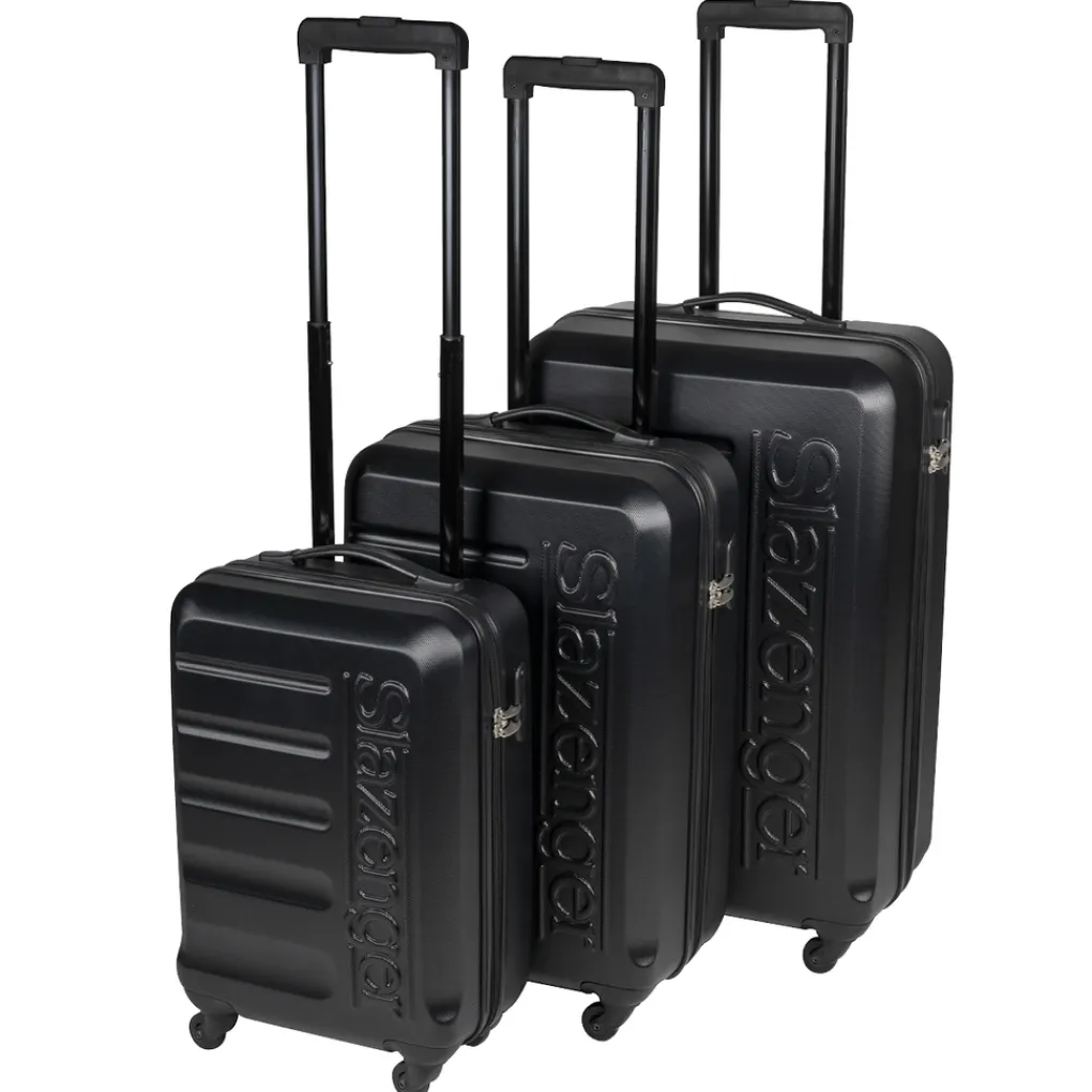 Deze kofferset 3-delig van Slazenger is beschikbaar in twee prachtige kleuren: zwart en grijs. Daarnaast is deze koffer set ook beschikbaar in een 2-delige uitvoering in de kleuren: roze, rood, zilver en zwart.Specificaties Slazenger Kofferset 3 Delig