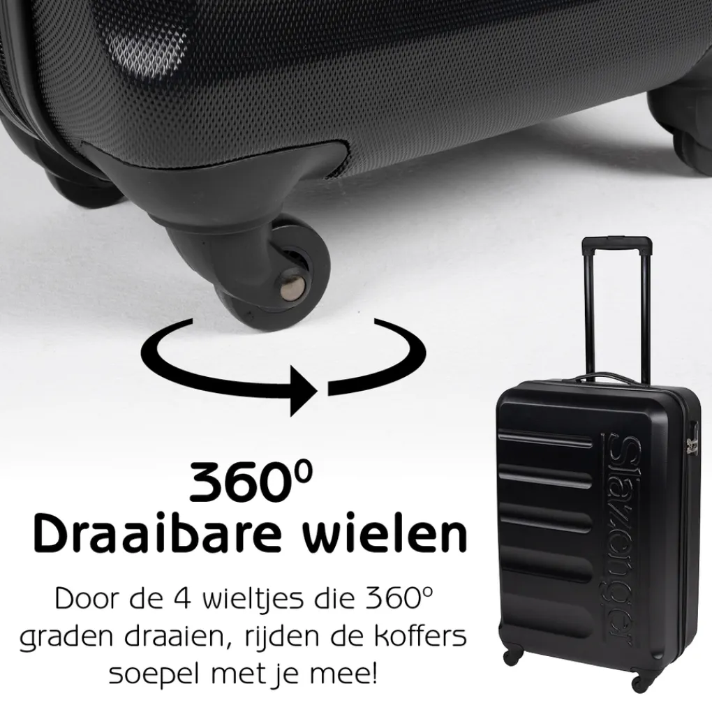 - Elke hardcase koffer uit deze kofferset beschikt over 4 wieltjes en een stevig handvat. Voor extra veiligheid beschikt de koffer set over een cijferslot met 3-cijferige combinatie die je zelf naar voorkeur in kunt stellen.