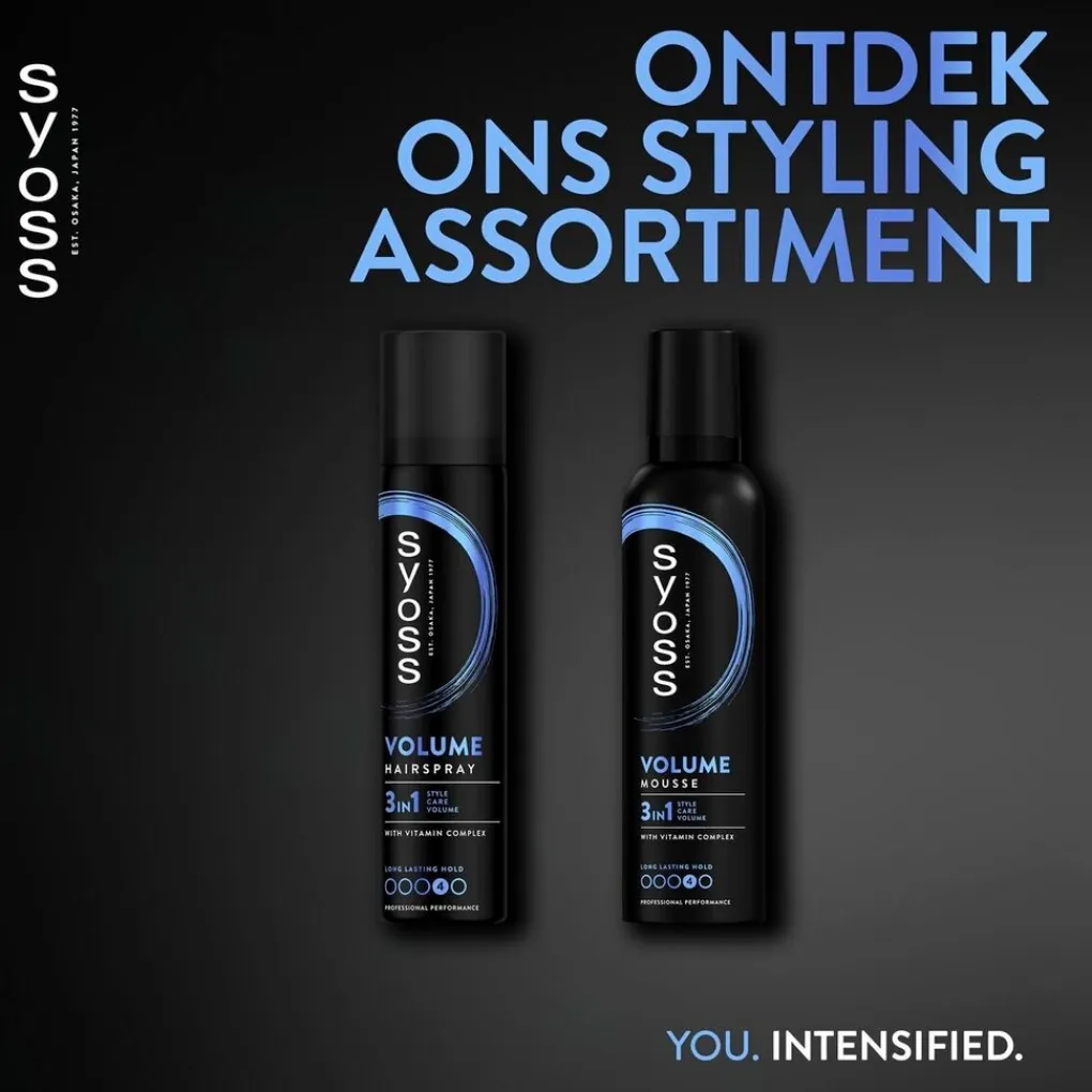 De salongeïnspireerde Syoss Hold 4 Volume Haarspray ontwikkeld met en getest door kappers, geeft tot 48 uur langdurige hold, een intens volume en een langdurige lift vanaf je haaraanzet.