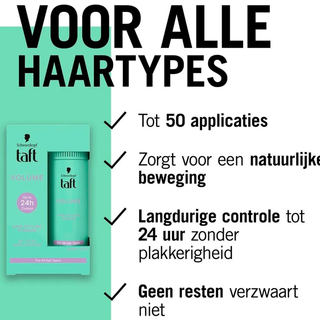 Het Taft Styling Volume Poeder biedt direct volume vanaf je haaraanzet. Het geeft lichtgewicht volume, grip en textuur aan alle haartypes. Het haarpoeder is gemakkelijk aan te brengen en uit te wassen.