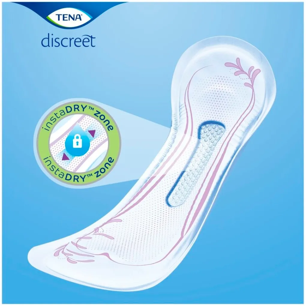 Tena Discreet Extra Incontinentieverband is speciaal ontworpen voor ultieme bescherming bij urineverlies. Deze zijdezachte verbanden zijn bijzonder zeker met de InstaDRY Zone en anatomische pasvorm.