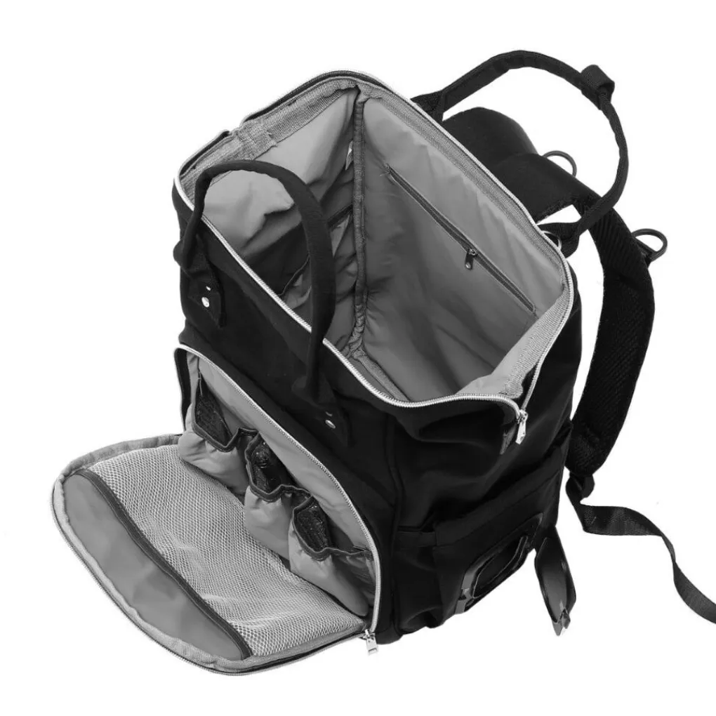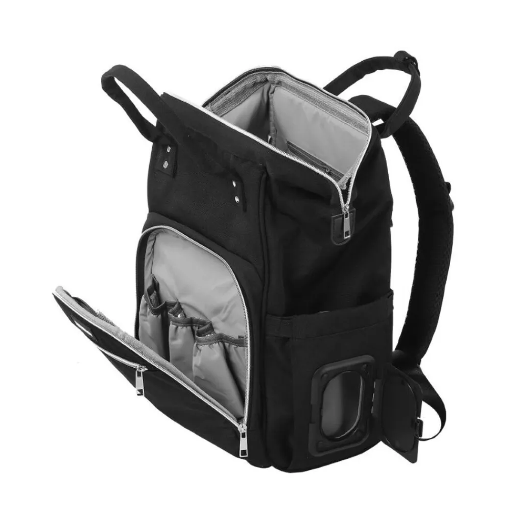 De luiertas heeft maar liefst 13 handige opbergvakken. Te beginnen met een groot compartiment met de inhoud van wel 20 liter die weer opgedeeld is in 4 kleinere compartimenten, zo kun je bijvoorbeeld je spullen zoals luiers, handdoek, verzorgingsproducten, enzovoort makkelijk opbergen. Aan de voorkant van de tas bevind je warm en koel houd vakjes die makkelijk voor melkflesjes of gekoeld drinken. Aan de rechter zijde is er een speciaal vakje voor de billen/hygiëne doekjes zodat je die altijd binnen handbereik hebt. Tevens bevind zich aan de achterzijde van de tas een handige opbergvakje voor de mobiele telefoon.