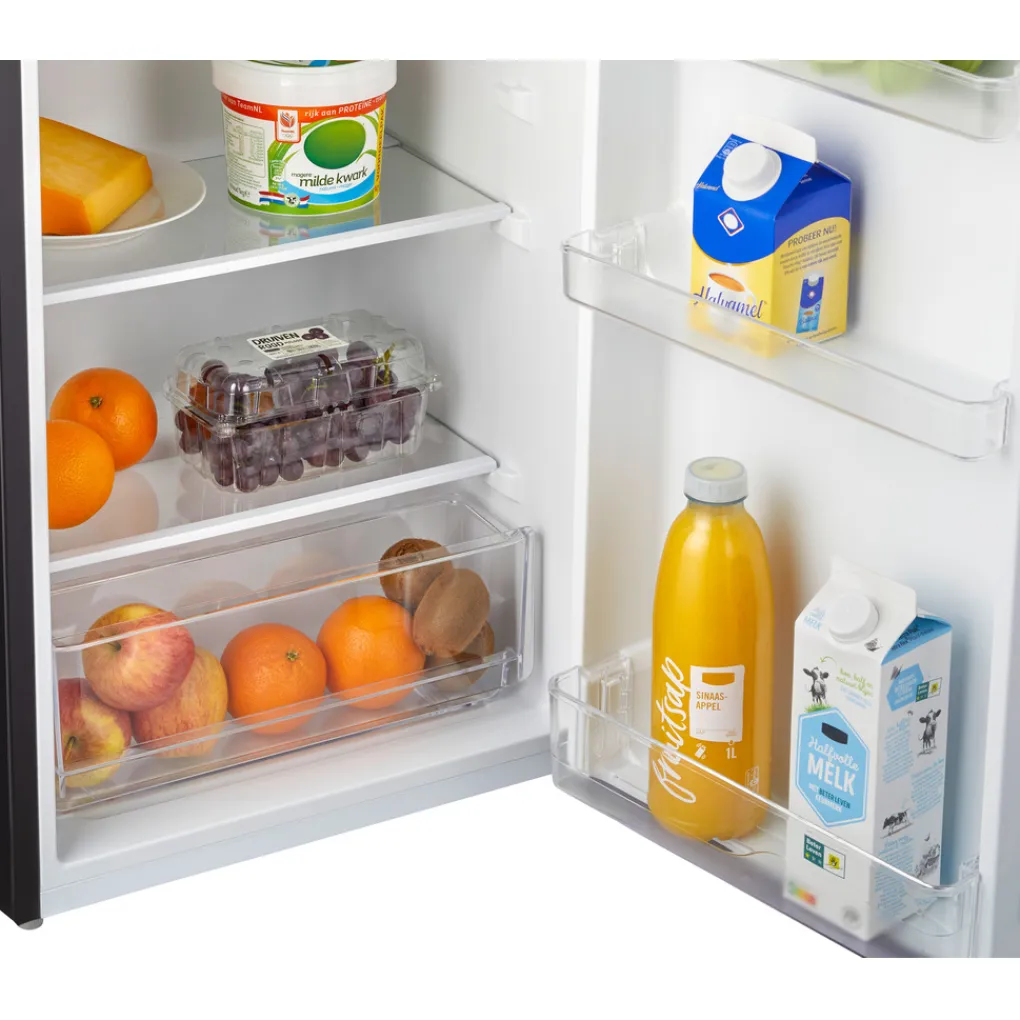 Deze tafelmodel koelkast heeft een netto inhoud 94 liter. Er zitten 3 glasplaten in waarvan er 2 verstelbaar zijn. Deze glasplaten hebben een speciaal gehard glas. Onderin de koelkast is er een groentelade te vinden waarmee je producten automatisch afgedekt worden.